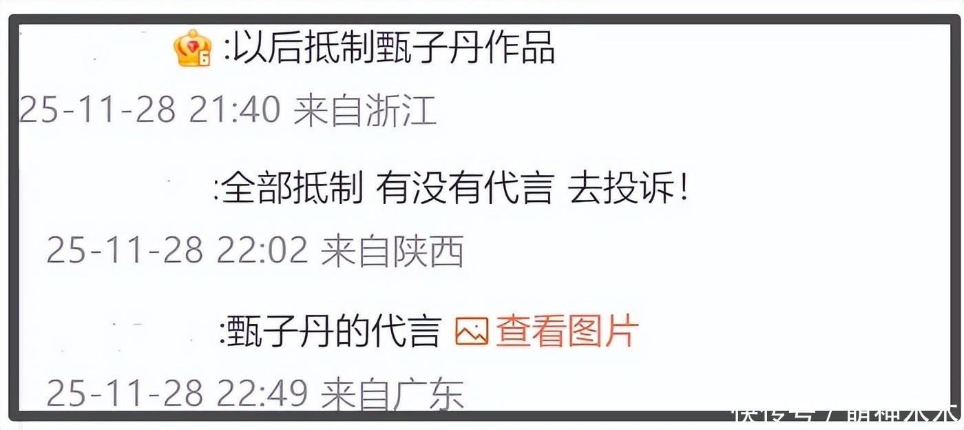 除了在评论区发泄怒火之外,网友们还自发地开始抵制甄子丹的作品与代言。大家在表明不会再看甄子丹的任何一部作品的同时,还将甄子丹的代言列了出来,表示出强烈的抵制,甚至呼吁大家一起投诉。另外,网友还直言抵制甄子丹来内地捞金,怒斥其是一个忘祖的人。