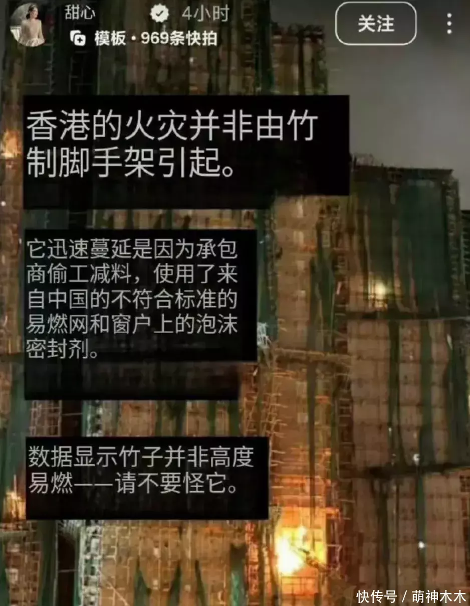 网友们的愤怒和对甄子丹的抵制也是可以理解的,此前,甄子丹的妻子汪诗诗在事态尚未明朗,官方没有给出明确调查结果的时候,INS转发不实言论,将火势蔓延原因甩锅给承包商,引发争议。尤其是其中“来自中国的不符合标准的易燃网”等词语,让网友格外愤怒。