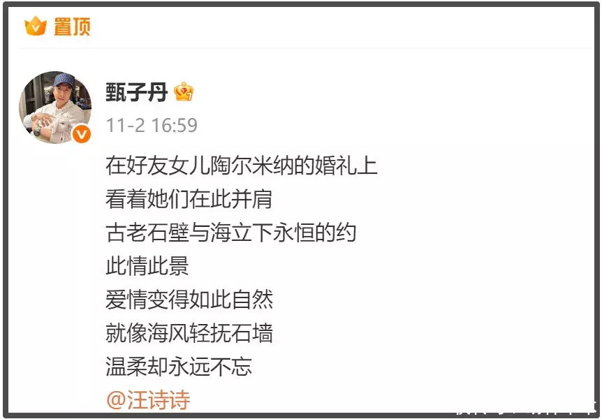 之后,网友又凭借“果然是一家人”和“一个被窝睡不出两种人”等原因将甄子丹和汪诗诗划上了等号。毕竟是朝夕与共的夫妻,想来人生观、价值观都是十分契合的。汪诗诗的言论何尝不代表是甄子丹的立场呢?他们可是一荣俱荣、一损俱损的夫妻。值得一提的是,甄子丹社交账号的置顶正是和妻子秀恩爱的照片,该条动态的评论区现在可以说是“骂声一片”。